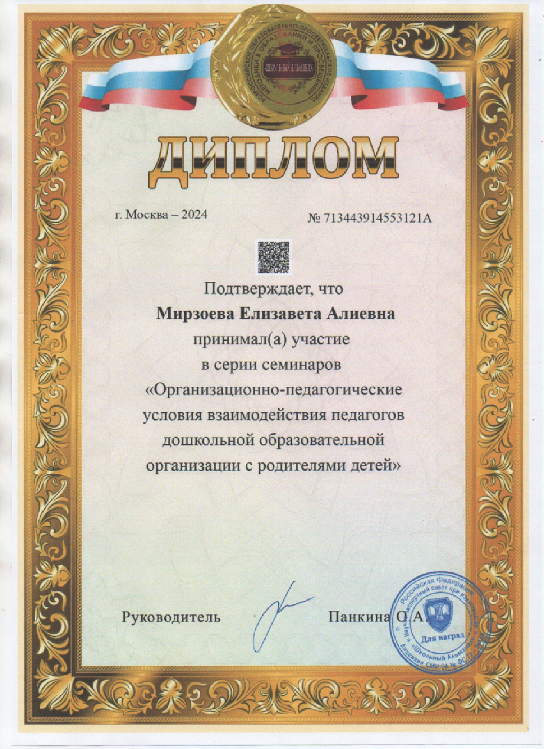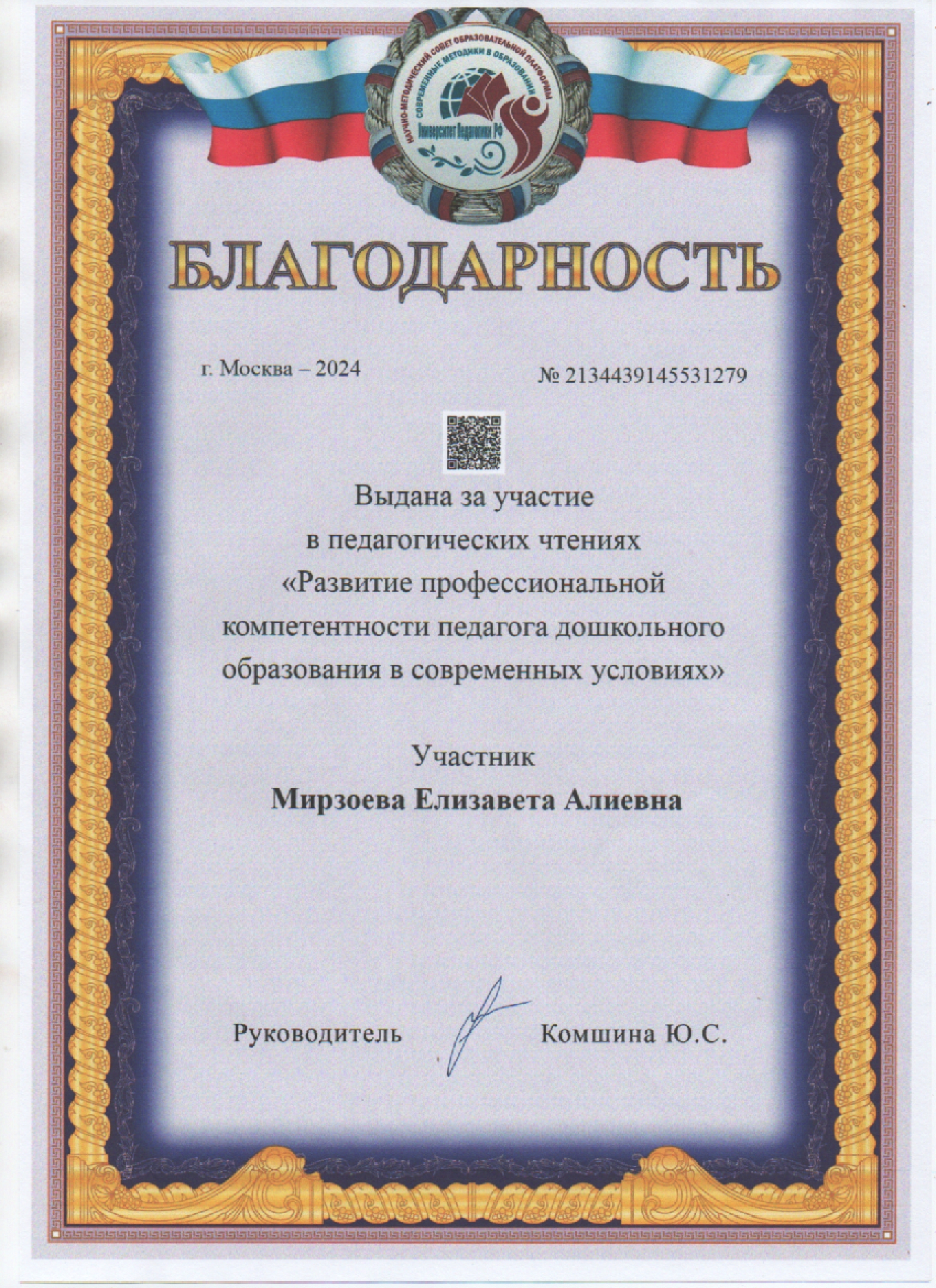 Дата получения квалификации: 2025 год