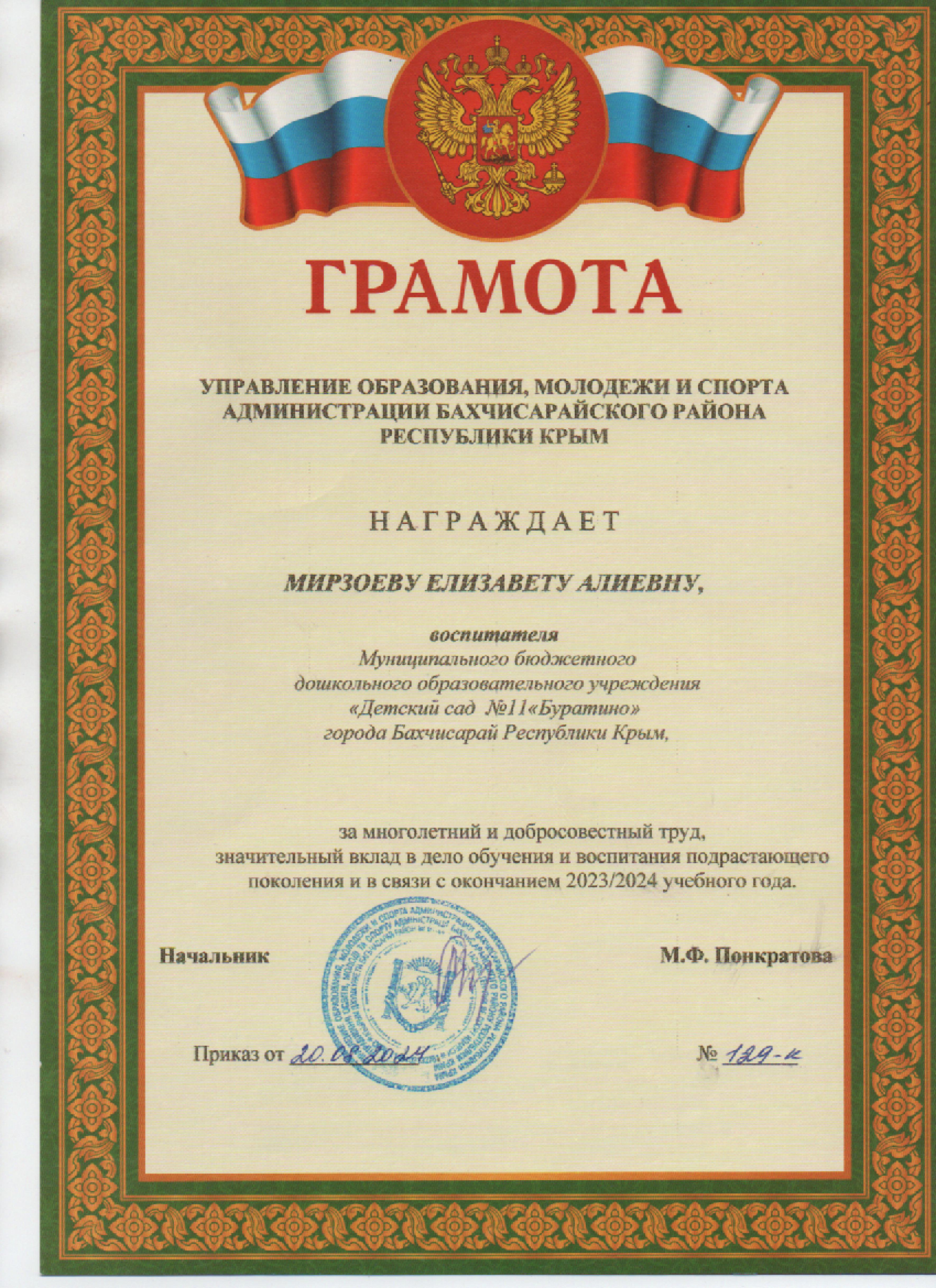 Направление подготовки и (или) специальности педагогического работника: 44.04.01 Дошкольное образование. Педагогическое образование